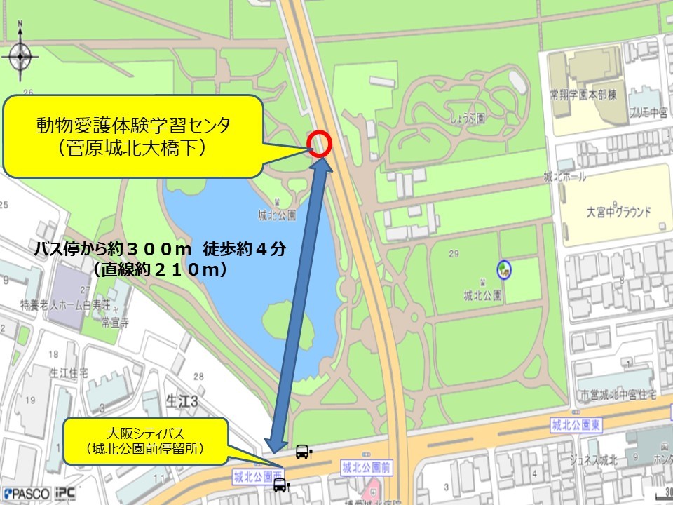 大阪市シティバス10系統、34系統「城北公園前停留所」から徒歩約4分